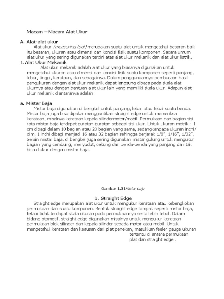 Alat ukur merupakan alat bantu yang digunakan untuk mengukur suatu hal dengan satuan tertentu. Jangka sorong dapat digunakan untuk mengukur diameter sebuah kelereng diameter dalam sebuah tabung atau cincin maupun kedalam sebuah tabung. Batas ketelitian dari meteran kelos adalah 25 mm atau 2 5 cm. Alat ukur adalah suatu alat yang berfungsi untuk mengukur suatu benda baik satuan panjang berat temperatur dan satuan lainnya.