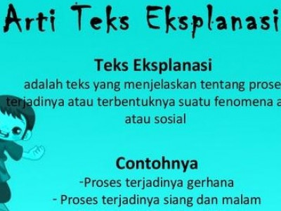 Teks eksplanasi adalah teks yang menjelaskan tentang proses atau tahapan mengapa dan bagaimana terjadinya suatu fenomena atau peristiwa yang berkaitan dengan alam sosial ilmiah dan budaya.