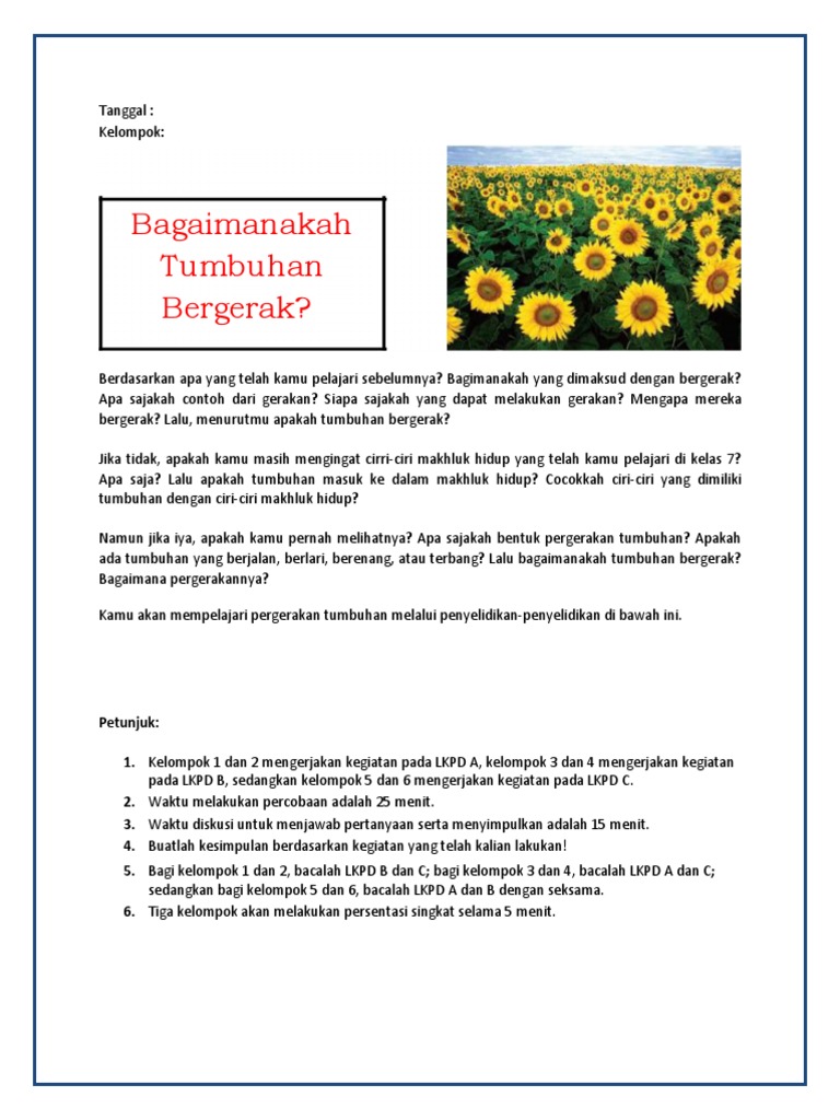 Gerak pada tumbuhan terjadi karena proses tumbuh atau karena rangsangan dari luar.