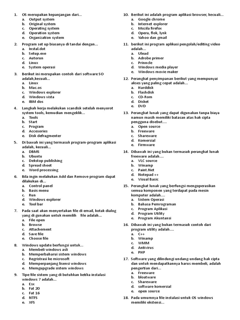 Berikut Yang Termasuk Contoh Software Adalah A Disket B Cd C Program Aplikasi D