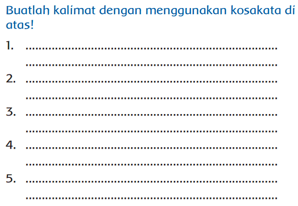 Buatlah kalimat dengan menggunakan kosakata di atas.