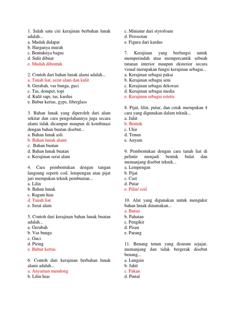 Contoh Dari Kerajinan Bahan Lunak Buatan Adalah A Gerabah B Lilin Hias C Vas Bunga D Bubur Kertas