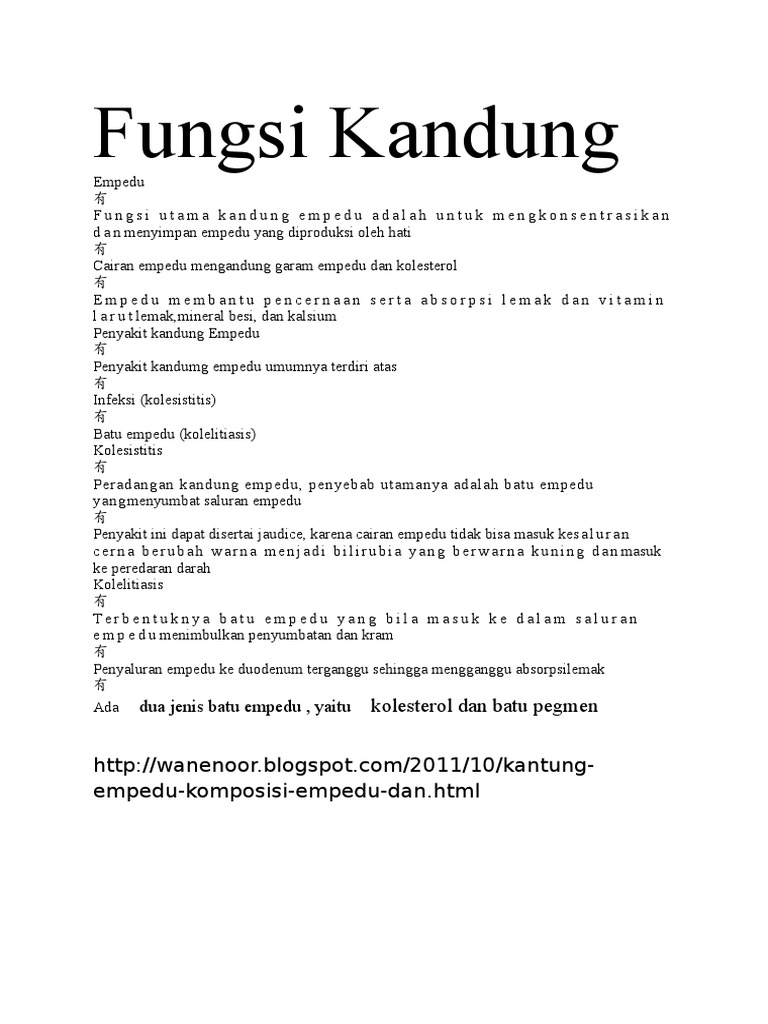 Sifat asam ini diperoleh dari pencampuran hcl sekresi dari bagian lambung yang. Namun abaikan rasa pahit itu karena di balik itu empedu memiliki fungsi yang sangat penting bagi tubuh manusia. Kantung empedu setiap manusia memiliki organ di dalam tubuhnya dan mempunyai tugas mau pun fungsi tertentu yang sangat penting bagi keberlangsungan hidup manusia jika ada salah satu organ yang tidak bisa bekerja dengan baik maka manusia akan mengalami kesulitan dan berkatifitas dan menjalankan aktifitasnya. Fungsi empedu dalam pencernaan salah satunya adalah membantu fungsi enzim pencernaan dengan bantuan fungsi pankreas enzim pencernaan yang berperan di usus halus dapat bekerja optimal dalam kondisi basa sedangkan zat makanan yang masuk ke usus memiliki sifat asam.