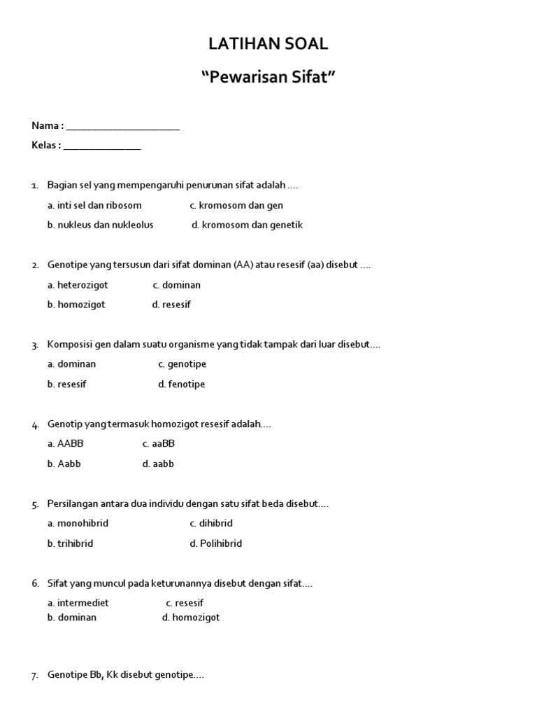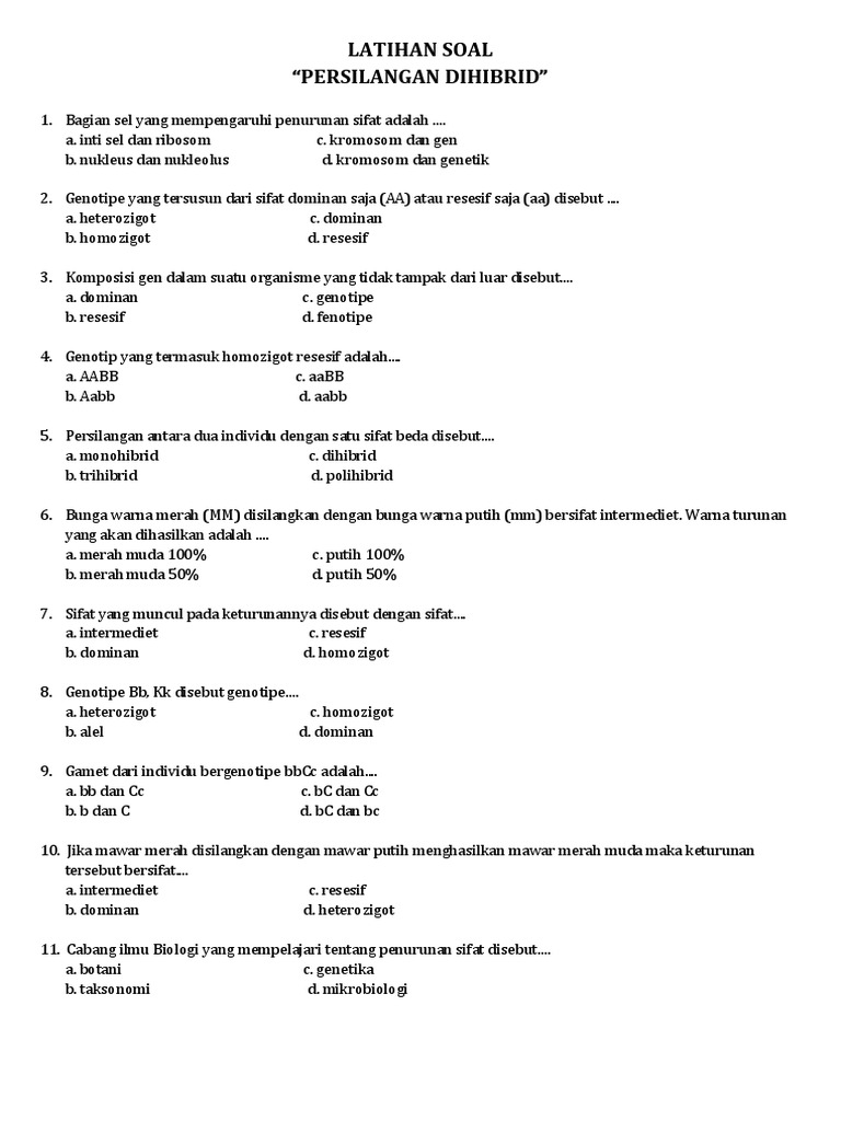 Genotip yang termasuk homozigot resesif adalah. Faktor penentu sifat pada makhluk hidup adalah. Persilangan antara dua individu dengan satu sifat beda disebut. Pada tumbuhan dengan genotip bbccdd jumlah gametnya adalah.