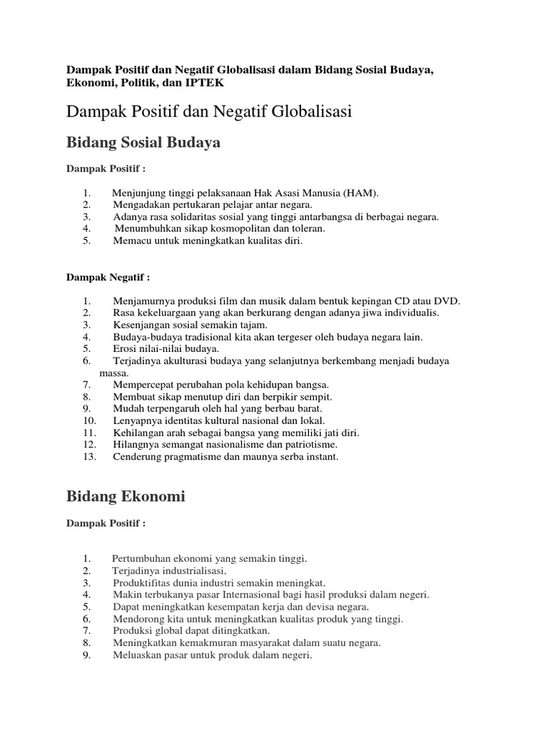 Jelaskan etika kehidupan berbangsa dan bernegara dalam bidang sosial budaya. Dampak positif dan negatif globalisasi di bidang sosial budaya. Benegara dan berbangsa ditemukan pada proses pertumbuhan pancasila sebagai dasar negara ideologi atau falsafah. Sikap positif terhadap pancasila dalam kehidupan berbangsa dan bernegara bisa ditunjukkan lewat perilaku sebagai berikut. Wanita yang awalnya selalu dinomorduakan dalam kehidupan kini sudah mendapat pengakuan.