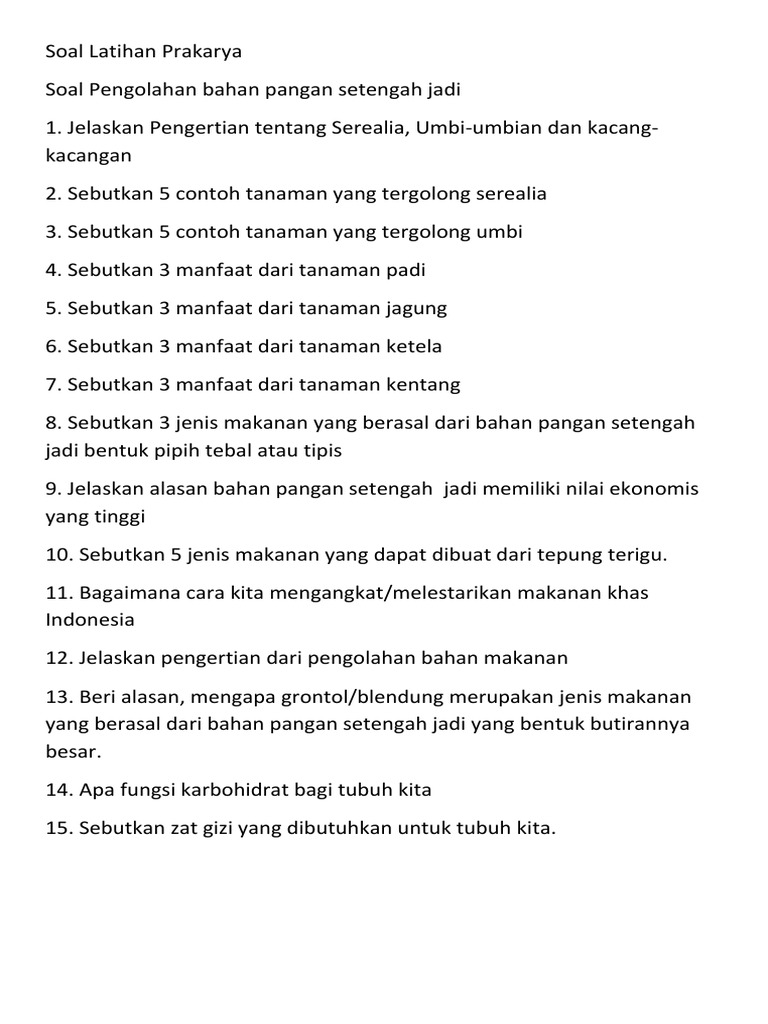 Pengertian pengolahan bahan pangan adalah suatu kegiatan mengubah bahan mentah menjadi bahan makanan siap dikonsumsi atau menjadi bahan setengah jadidengan tujuan untuk meningkatkan kualitas dan memperpanjang masa simpan bahan panganserealia adalah jenis tanaman golongan padi padian atau rumput rumputan gramineae yang dibudidayakan untuk. Kandungan utama pada serealia yaitu karbohidrat terutama pati kurang lebih 80 dari bahan kering protein kurang lebih 5 dari bahan kering lemak kurang lebih 5 dari bahan kering air mineral kurang. Kacang kacangan adalah biji yang berukuran lebih besar dibandingkan serealia yang digunakan sebagai bahan pangan manusia dan hewan ternak. Dengan demikian dapat disimpulkan bahwa pengertian dari pengolahan bahan pangan setengah jadi dari serealia dan umbi menjadi makanan b.