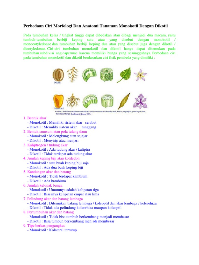 Jelaskan Perbedaan Morfologi Tumbuhan Monokotil Dan Dikotil