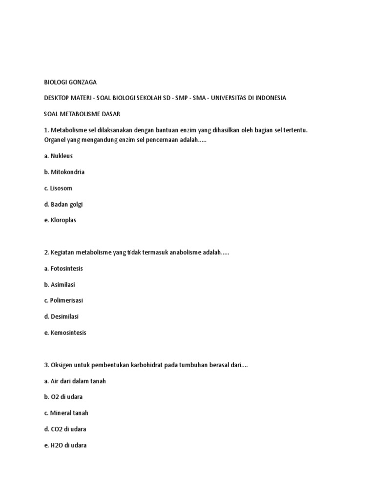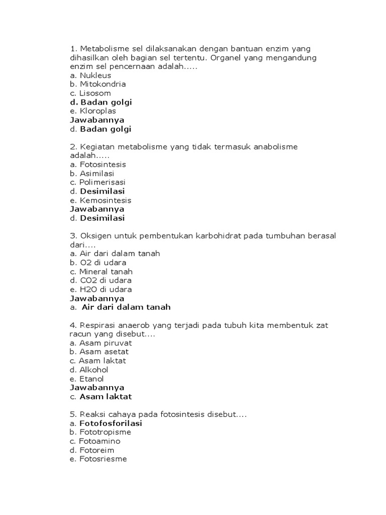 Kegiatan Metabolisme Yang Tidak Termasuk Anabolisme Adalah
