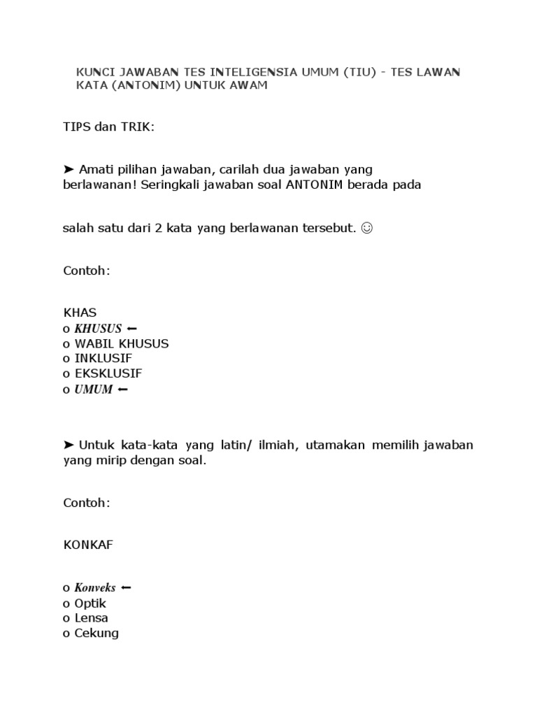 Dan tak kalah penting antonim juga sering keluar dalam soal soal ujian. Antonim kata atau lawan kata ini merupakan bagian dari tes kompetensi dasar tkd yang mana para peserta ujian dituntut untuk mencari satu kata berlawanan artinya lawan kata.