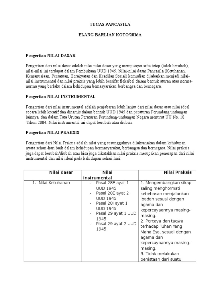 Makalah nilai dasar nilai instrumental dan nilai praksis. Kedudukan dan fungsi pancasila sebagai ideologi negara dan falsafah hidup bangsa indonesia sesungguhnya mengandung 3 tiga macam nilai yaitu nilai dasar nilai instrumental dan nilai praktis. Nilai praksis juga dapat berubah diubah atau bisa juga dikatakkan nilai praksis merupakan penerapan dari nilai instrumental dan nilai ideal pada kehidupan sehari hari. 1 nilai sila 1. Nilai praktis atau kerap disebut pula sebagai nilai praksis adalah perwujudan dari nilai dasar dan nilai instrumental dalam kehidupan berbangsa dan bernegara sehari hari.