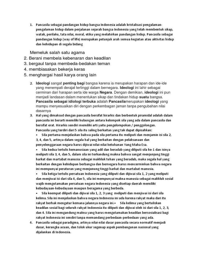 Pancasila sebagai pandangan hidup bangsa indonesia makna atau arti pancasila sebagai pandangan hidup bangsa indonesia adalah kristalisasi pengalaman pengalaman hidup dalam perjalanan sejarah bangsa indonesia yang telah membentuk sikap watak perilaku tata nilai moral etika yang melahirkan pandangan hidup pancasila sebagai pandangan hidup sering disebut dengan way of life weltanschauung. Pancasila sebagai pandangan hidup bangsa merupakan a. Pengamalan seluruh sila dari pancasila juga tidak dapat dilaksanakan secara terpisah karena pancasila merupakan satu kesatuan yang utuh dan saling berkaitan. Pandangan hidup yang diyakini suatu masyarakat maka akan berkembang secara dinamis dan menghasilkan sebuah.