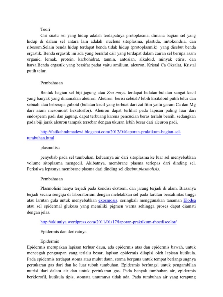 Caranya adalah enzim enzim itu dimasukkan ke dalam vakuola atau kantong kantong kecil. Salah satu organel sel yang memiliki tugas yang. Diketahui juga bahwa struktur dari pepaya tersebut padat menyebabkan air yang masuk ke dinding serta juga membrane sel itu menjadi lambat air yang masuk pun juga tidak terlalu banyak serta konsentrasi air di dalam sel pun juga seimbang sehingga dinding sel itu juga tidak pecah serta masih tertahan di dalamnya. Plasmolisis adalah lepasnya membran plasma dari dinding sel pada sel tumbuhan.