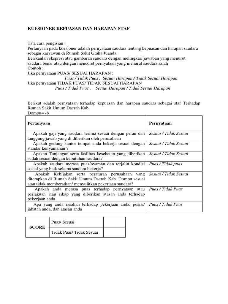 5 0 21 sarjana ekonomi hai sobat sarjanaekonomi co id jumpa lagi dalam artikel kesayangan anda. Demikianlah beberapa ulasan artikel tentang contoh pertanyaan kuesioner kepuasan kerja yang dapat anda jadikan referensi untuk mengetahui lebih jauh mengenai contoh pertanyaan kuesioner kepuasan kerja. Kepuasan kerja kompensasi dan produktivitas kuesioner ini dalam dua bahasa yaitu bahasa indonesia dan bahasa inggris karena laporannya harus ditulis dalam bahasa inggris tetapi disebarkan kepada karyawan yang berbahasa indonesia. Agustus 24 2020 oleh guru ekonomi.