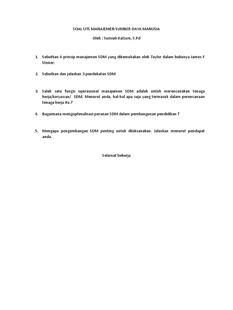 Pertanyaan Tentang Perencanaan Sdm