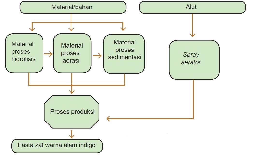 Proses aerasi pada pembuatan zat warna alam indigo dilakukan setelah proses. Selain memperkuat ikatan garam logam juga berfungsi untuk mengubah arah warna zwa sesuai jenis garam logam yang mengikatnya. Pembuatan alat spray aerator b. Pada akhir proses pewarnaan alam ikatan antara zat warna alam yang sudah terikat oleh serat masih perlu diperkuat lagi dengan garam logam seperti tawas k so 4 2 kapur ca oh 2 dan tunjung feso 4. Bahan baku zat warna alam ini berupa daun nila yang diolah melalui proses perendaman 24 jam proses aerasi dan proses pengendapan.