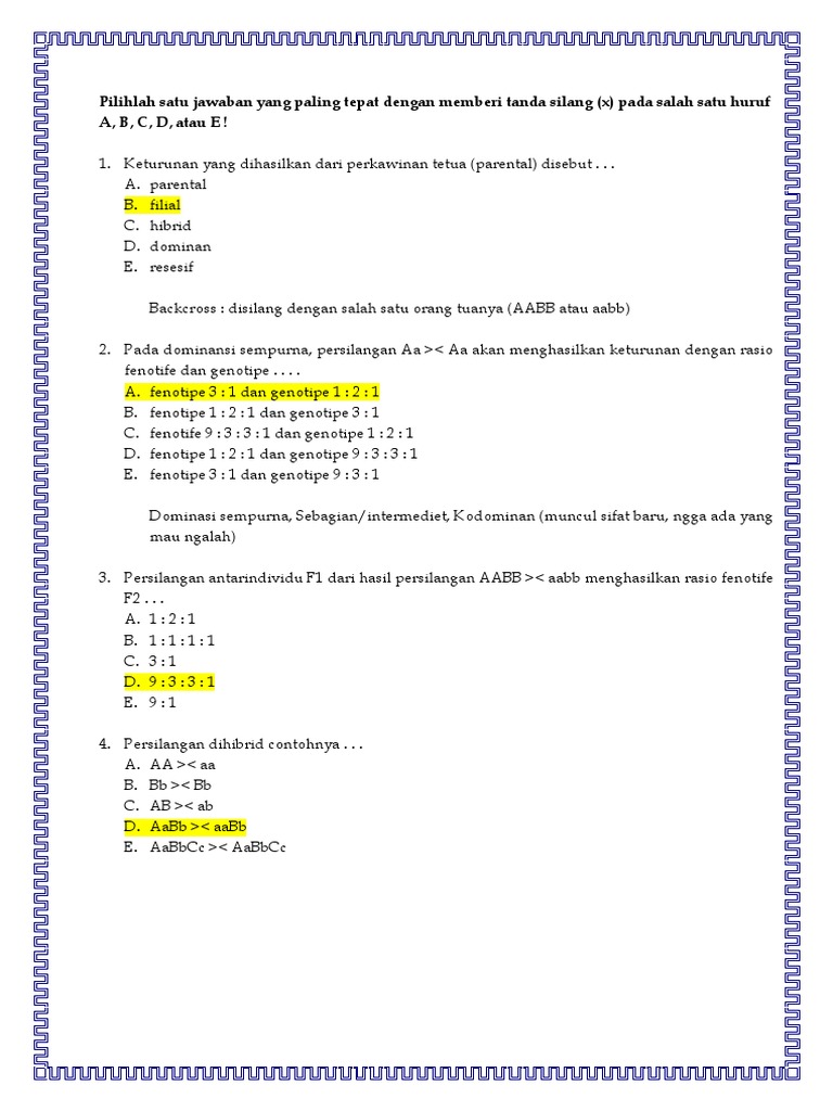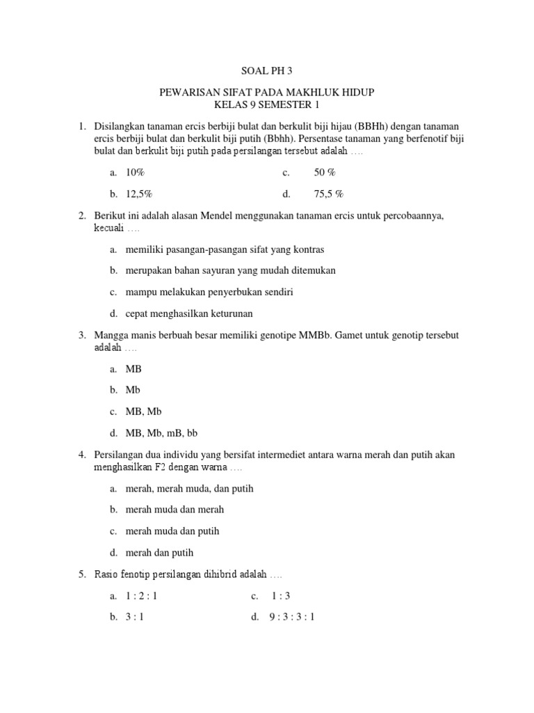 Rasio fenotip persilangan dihibrid adalah a 1 2 1 b 3 1 c 1 3 d 9 3 3 1. Soal dan jawaban protozoa. Contoh soal ipa kelas 8 semester 1 kurikulum 2013. Misalnya warna bunga adalah karakter tanaman yang diamati. Pilihlah salah satu jawaban yang paling benar dengan memberikan tanda silang x pada salah satu huruf a b c atau d.