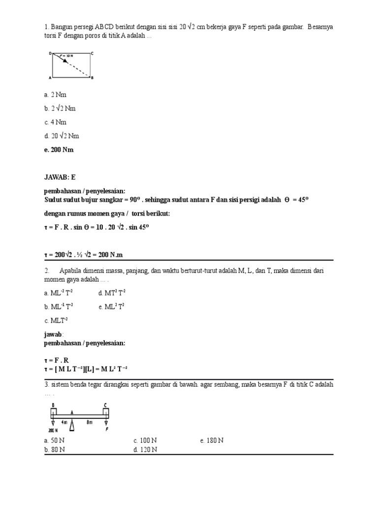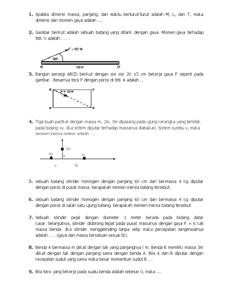 Sebuah Batang Silinder Homogen Dengan Panjang 60 Cm Dan Bermassa 4 Kg Diputar Dengan Poros Di Salah Satu Ujung Batang Berapakah Memen Inersia Batang Tersebut