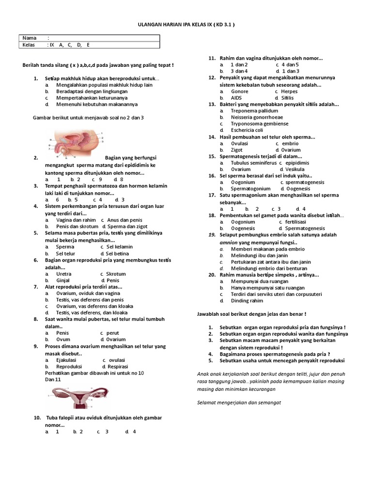 Selaput pembungkus embrio salah satunya adalah amnion yang mempunyai fungsi. Memberi makanan dan o2 pada embrio d. Pilihlah satu jawaban yang benar. Soal ulangan harian bab sistem reproduksi a.
