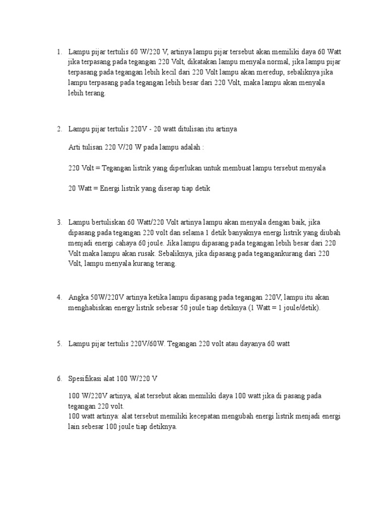 Watt adalah sebuah satuan yang menunjukan sebuah nilai daya atau power bisa juga dibilang kapasitas listrik. Spesifikasi lampu a adalah 36 w 220 v dan lampu b adalah 18 w 220 v. Lampu led merupakan lampu paling hemat energi diantara jenis lampu lainnya meskipun harganya relatif mahal. Sementara itu pada tegangan 230 volt seperti yang digunakan di indonesia nilai keluaran bolam 100w adalah 1 380 lumen 23 atau setara dengan 13 8 lumen per watt.