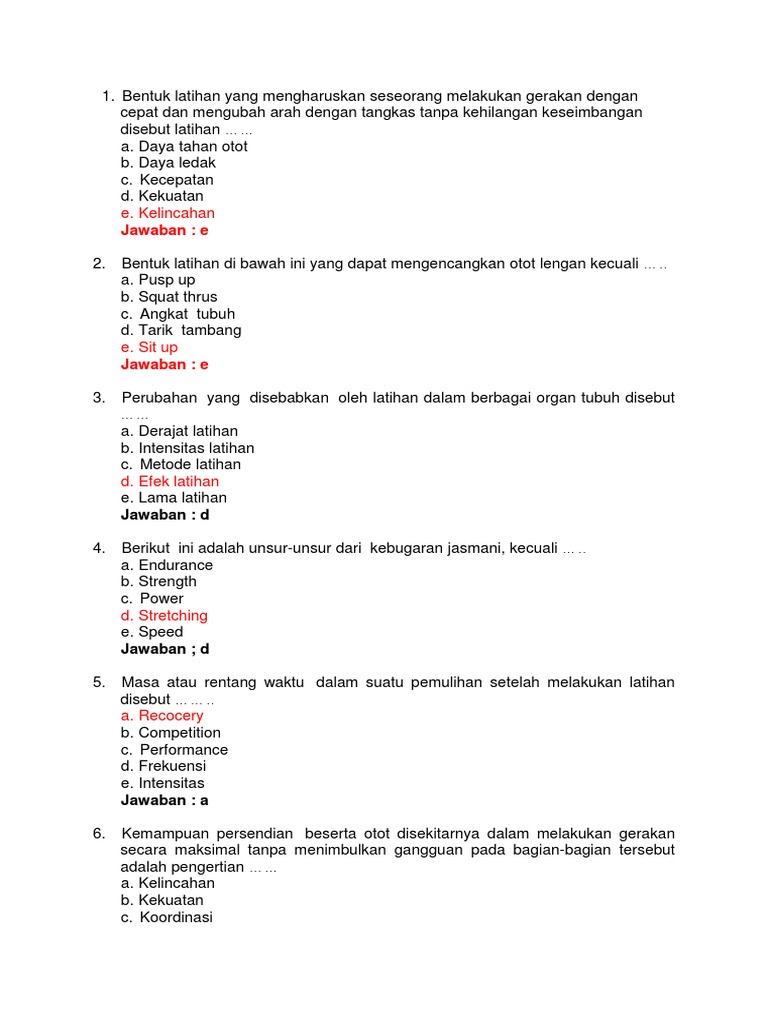 Squat thrust adalah salah satu bentuk latihan kelincahan daya ledak keseimbangan koordinasi. Bentuk bentuk latihan kelincahan yang umum di lakukan untuk meningkatkan kelincahan seseorang adalah. Squat thrust adalah salah satu bentuk latihan. Salah satu bentuk latihan untuk meningkatkan kelincahan adalah. Kalau dua orang individu masing masing dapat mengangkat beban ayang beratnya 50 kg akan tetapi yang seorang yang dapat mengangkatnya lebih cepat dari pada yang lain maka orang itu disebut.