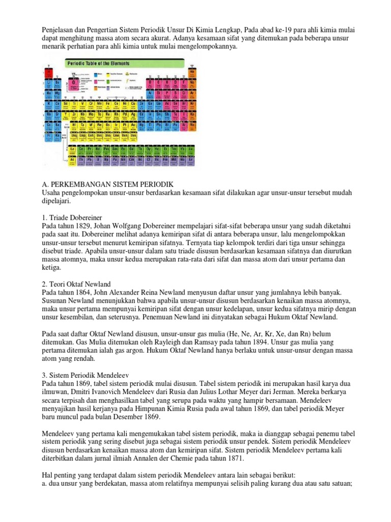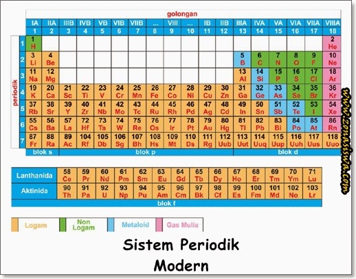 Sistem periodik modern moesley berhasil menemukan sistem periodik unsur modern yang disusun berdasarkan pada kenaikan nomor atom dan kemiripan sifatnya. Tabel sistem periodik mendeleev yang telah disempurnakan 1871 terdiri atas golongan lajur tegak dan periode deret mendatar. Memang terbilang rumit tetapi jika mau sering sering berkutat dengannya akan lebih mudah untuk menghafal. Unsur unsur satu kolom dan satu baris memiliki sifat kimia yang mirip.