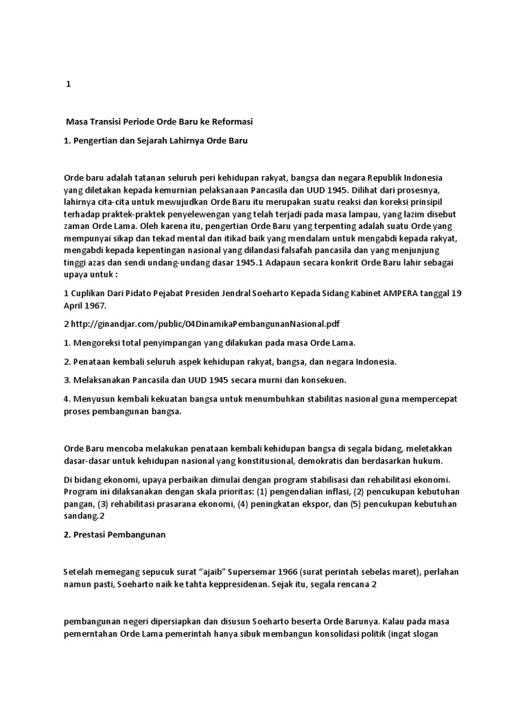Tonggak sejarah pertama yang diangkat oleh bangsa indonesia dalam rangka mewujudkan suatu negara bangsa modern yang adil dan makmur adalah tahun 1908 tepatnya tanggal 20 mei 1908 yakni kelahiran suatu organisasi kemasyarakatan yang diberi nama boedi oetomo. Latar belakang lahirnya orde baru lahirnya era orde baru dilatarbelakangi oleh runtuhnya orde lama. Setelah g3os pki itu berhasil ditumpas serta berbagai bukti yang berhasil dikumpulkan menujukan kearah pki partai komunis indonesia kemudian akhirnya diambil suatu kesimpulan bahwa pki partai komunis indonesia merupakan dalang dari gerakang ini pki partai komunis indonesia ialah yang melatar belakangi terjadi peristiwa g30s pki. Syarat parpol yang boleh mengikuti pemilu 2004.